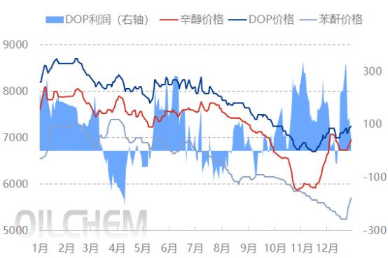 Due to a planned production cut in o-phthalic anhydride in January, prices began to rise at the end of December. Phthalic anhydride prices had already absorbed the impact of rising raw material prices, resulting in a strong rebound. In East China, the weekly increase in o-phthalic anhydride reached 600 yuan/ton to 5900 yuan/ton, reaching a two-month high. Coupled with the increase in octanol prices, the weekly increase in DOP cost was 400 yuan/ton, but the price increase only followed by 250 yuan/ton. As a result, the profit level dropped to 50-100 yuan/ton, with a significant decrease in profits.